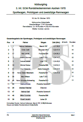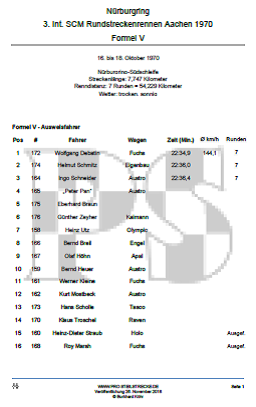 das sind 174,95 km/h. Schon am Freitag hatte Helmut Kelleners mit dem March 707 den 1968 von Brian Redman auf dem Ferrari-Formel-2-Rennwagen