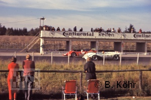 Nun hatte Peter Ernst (Abarth 1000 TCR) keinen Gegner mehr, gewann unangefochten dieses Rennen vor Willi Wisskirchen (NSU).