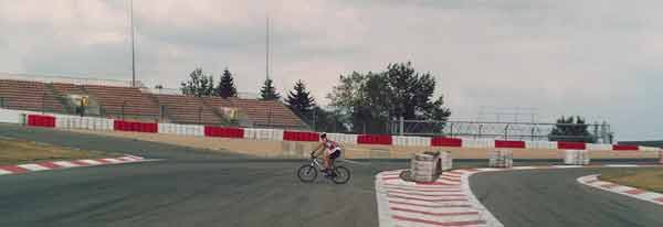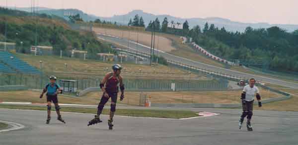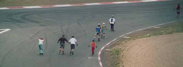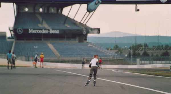 Am Nachmittag machte Heike dann mit vielen anderen Inlinern die Bekanntschaft mit der Grand-Prix-Strecke. Auf der Grand-Prix-Strecke geht es – erstaunlicherweise - nur Bergauf oder Bergab. Alternativ zur gesamten Grand-Prix-Strecke konnte auch die Kurzanbindung über die Conti-Spange gefahren werden. Spätestens an der NGK-Schikane verließen viele Teilnehmer die Kräfte.