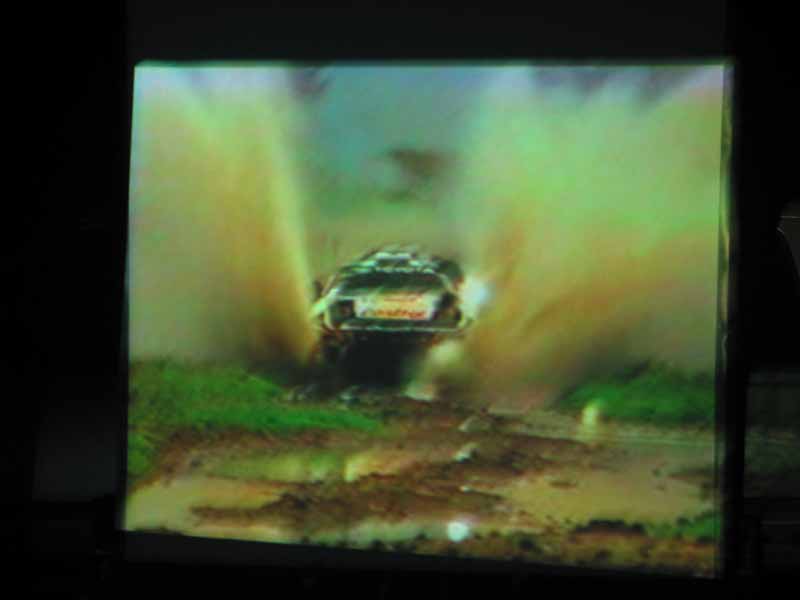 Nach der ersten WP trifft man sich dann am Lager für die Nacht in der Nähe der Müllenbach-Kehre. Es dauert auch nicht lang bis der Glühwein-Kessel süßliche Düfte von sich gibt, die für die üblichen Kopfschmerzen am nächsten Morgen sorgen sollen. Egal, nicht nur vom Glühwein wird uns warm ums Herz - spätestens nachdem Ferdi das Open-Kino startklar gemacht hat, läßt uns der Klassiker "Evolution des Driftwinkels" und ein "Walter Röhrl Portrait" auf einen herrlichen Rallye-Samstag hoffen.