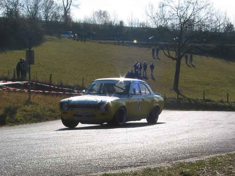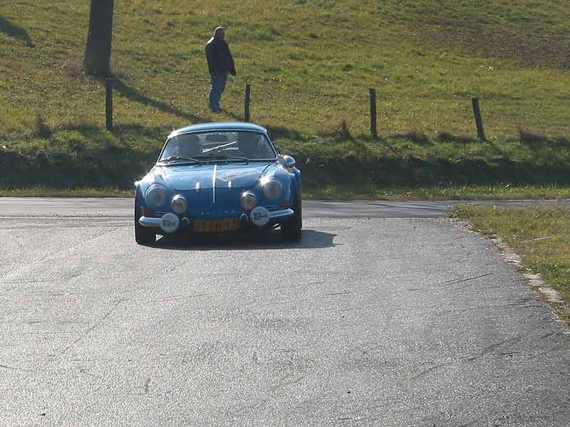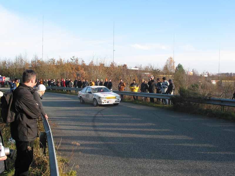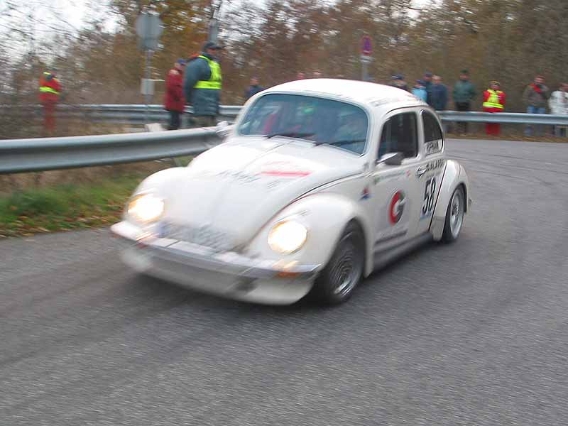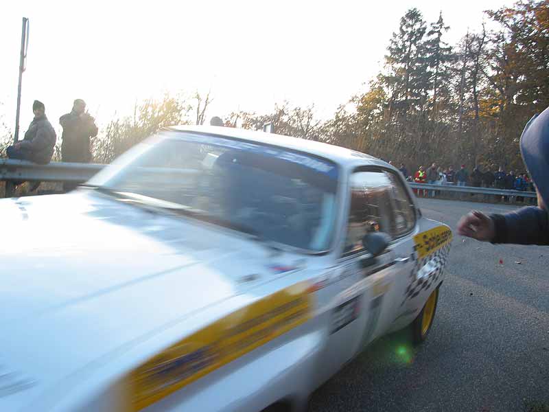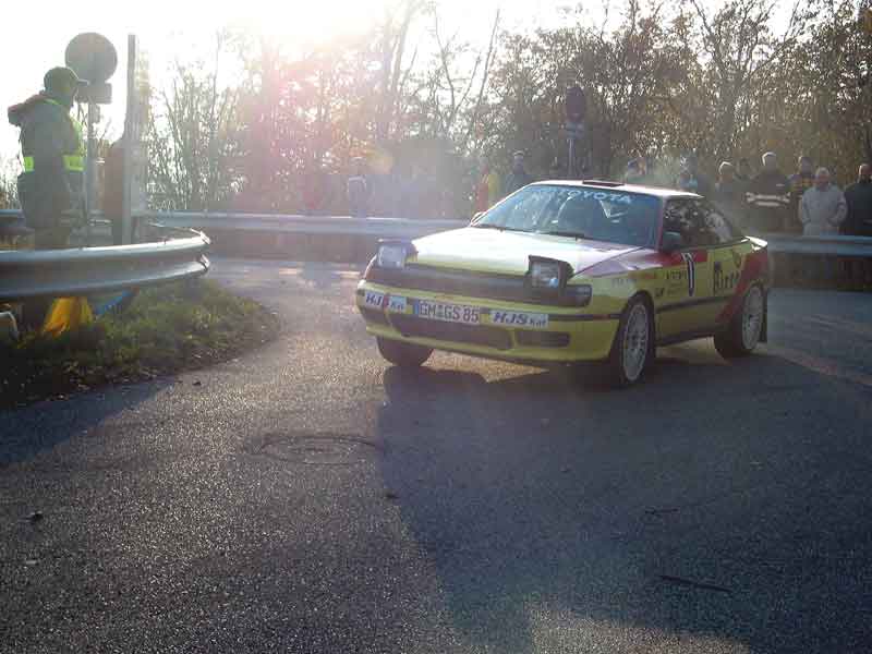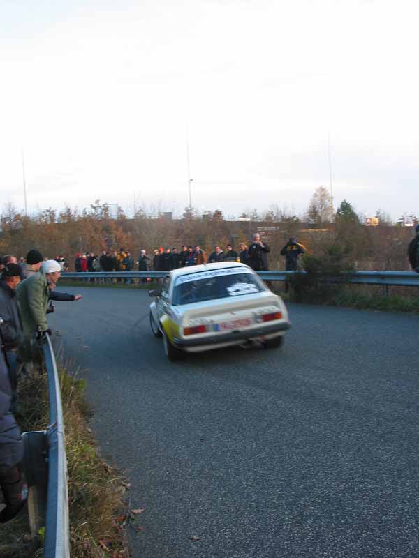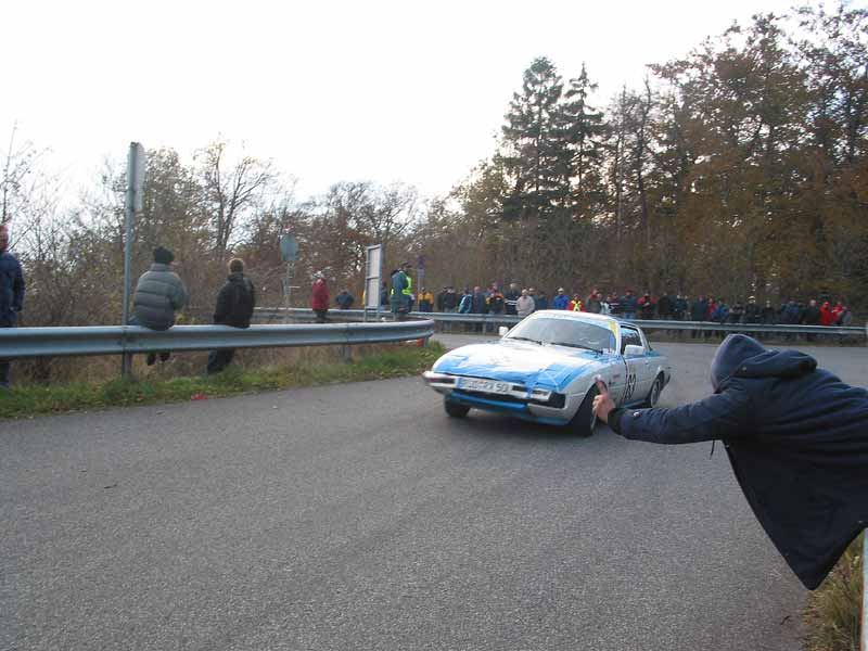 Der Verlauf an diesem Streckenabschnitt läßt uns auf einige Drifts hoffen; später sind wir jedoch von den meisten Fahrzeugen enttäuscht. Natürlich gibt es wie immer Ausnahmen: Das soll in diesem Fall zum einen der Käfer aus der Gruppe der Vorfahrzeuge sein - der Pilot ist an diesem Tag eh so übermotiviert, daß er bei einer späteren WP mit seinem Heckmotor in den Planken landet und die Veranstaltung für ihn zu Ende ist - zum anderen sorgt der Star der diesjährigen Rallye "unser Walter" mit einem Hammer-Quersteher dafür, daß auch an diesem so sonnigen Tag die Eifel vernebelt ist. Aber: Auch "der Lange" scheidet mit den 911er bei einer darauffolgenden WP zur Enttäuschung unser aller aus. Wir hätten gerne mehr von dem Nebel gehabt.