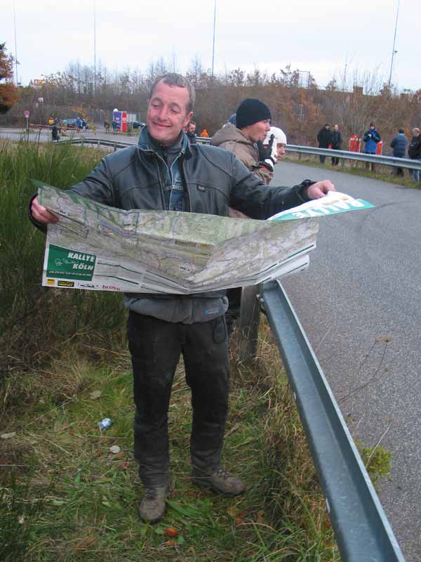 Ein letzter Blick auf den auch diesem Jahr wieder sehr guten allerdings etwas zu teuren WP-Lageplan verrät uns, daß wir es wohl nicht schaffen, eine weitere WP zu bestaunen. So verabschieden wir uns von Olli und Udo ( "Unterdorf Quiddelbach !" und unseren Hütter-Freunden.