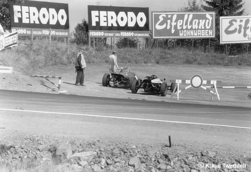 Diese Formel V-Fahrer biegen wohl eher unfreiwillig aus der Nordkehre rechts ab auf die Betonschleife.