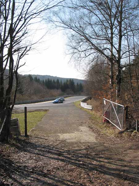 Wo wir schonmal da sind, sehen wir uns die ganze Sache doch auch mal im Bereich der Aremberg-Kurve und der Anfahrt zur Fuchsröhre an. Auch die Postbrücke muß noch fotografiert werden - was für ein Glück, daß dort auch gerade Rennverkehr herrscht!