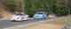 hoher Geschwindigkeit überqueren die Autos eine Kuppe und bremsen dann die