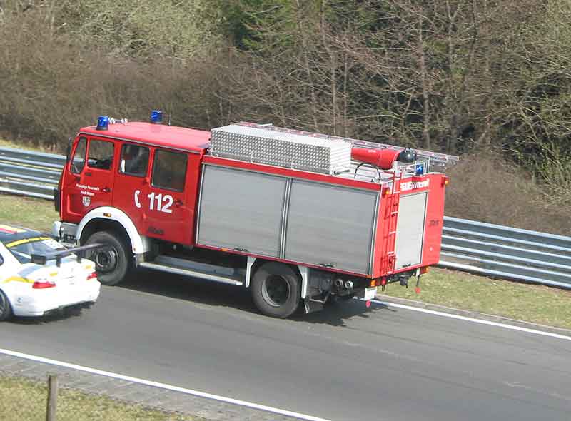 Die Bremse an der Hinterachse hatte sich festgefressen und war so stark überhitzt, daß die Flammen aus den Felgen schlugen. Dank der Feuerwehr im Bereich Quiddelbach konnte der Bremsenbrand sofort gelöscht werden.