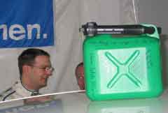 Der Sven hat in Anspielung auf sein Problem aus dem letzten Rennen noch einen 5L Kanister von einem Fan geschenkt bekommen - was ist ihm wohl letztes mal passiert ???