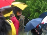 Regenbekleidung und Fanhaltbarkeit sollen heute einem Härte-Test unterzogen
