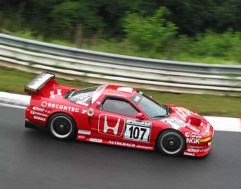 Werner Hüsken auf seinem M3 GTR ist der Erste, der unsere Ohren und Augen erfreut. Total begeistert sind wir als sich der Coburger Käfer ( SP3 ) und der Altschach Honda NSX - heute mit Artur Deutgen am Lenker - durch die langsamste Stelle quetschen.