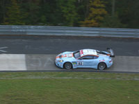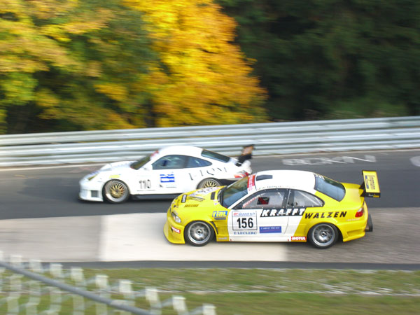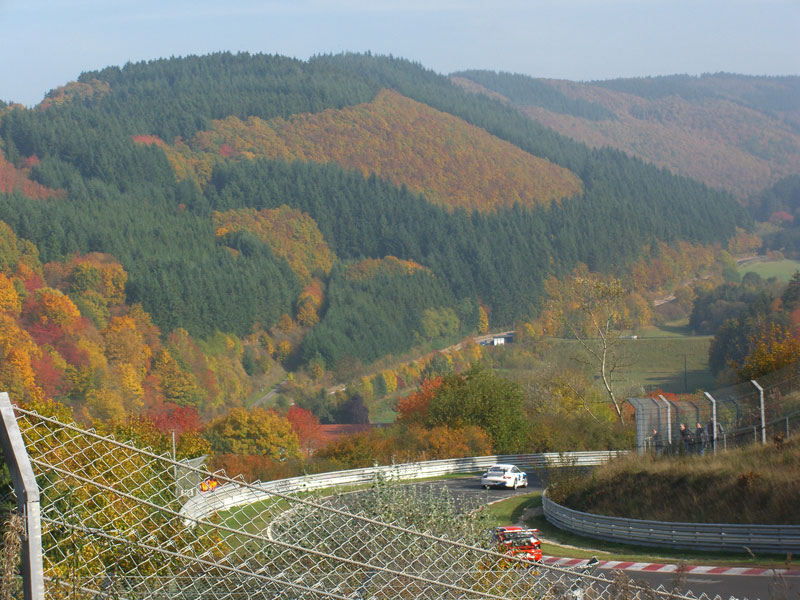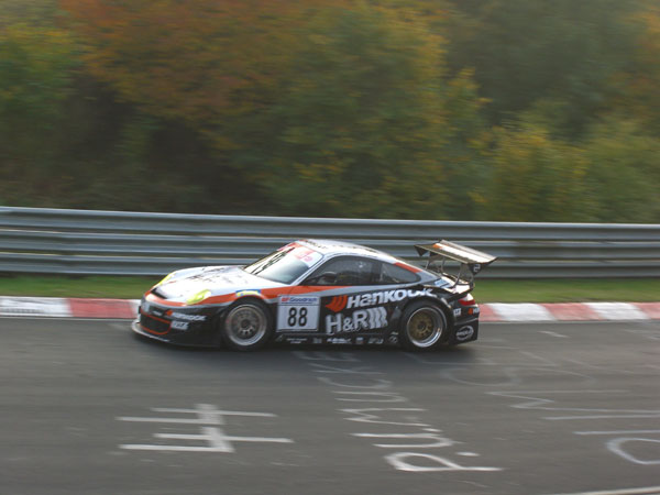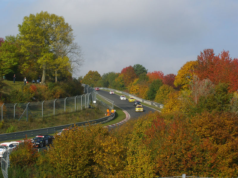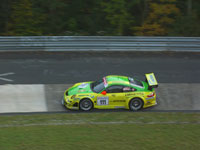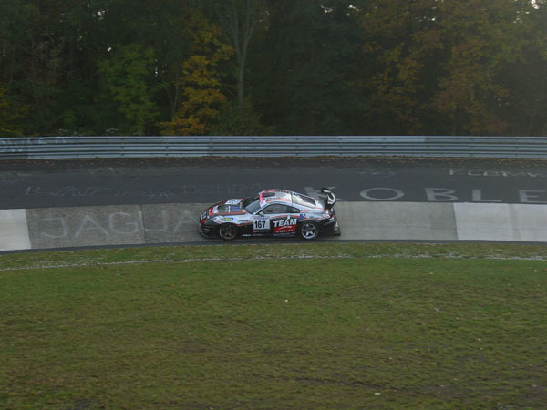 Die tief stehende goldene Oktobersonne führte die Rennfahrer im Blindflug rauf vom Klostertal ins Karussell. Einige Verbremser vor dem Einlenkpunkt in das Karussell waren die Folge. Land-Motorsport verkürzte bis ca. 17:00 Uhr den Vorsprung auf den Alzen-Porsche. Ein Unfall (?) mit abgeknickten Vorderrad bedeutete leider das Aus. Doch auch das Alzen-Team blieb nicht verschont. Ein Reifenschaden aufgrund einer Kollision zwang zu einem weiteren Boxenstopp. Der hervorragende Vorsprung auf Manthey-Racing war dahin. In der letzten halben Stunde zeigte Uwe Alzen der Konkurrenz nochmals was in dem Turbo steckt. 10 Minuten vor Rennende wurde der Aston Martin DBRS9 überholt und der zweite Platz gesichert. Die verbleibende Zeit reichte nicht mehr aus, um an das Manthey-Racing-Team ranzukommen. Wie Johannes-Lee-Cœur feststellte: „Moralischer Sieger ist das Alzen-Team.“