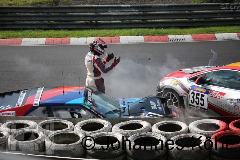 mit Dominik Thiemann / Torsten Kratz / Hajo-Franz Müller (BMW Z4) im Streckenabschnitt Schwedenkreuz. Beide Wagen erlitten