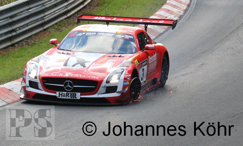 Sieger beim 9. VLN-Lauf wurde Rowe-Racing mit Christian Hohenadel und Maro Engel (Mercedes-Benz SLS AMG GT3) vor Marco Werner /
