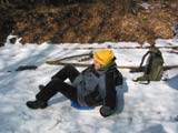 u. Recaro-Sitzkissen bemüht, um als Rodelhilfe die 27% bergab zu schießen !
