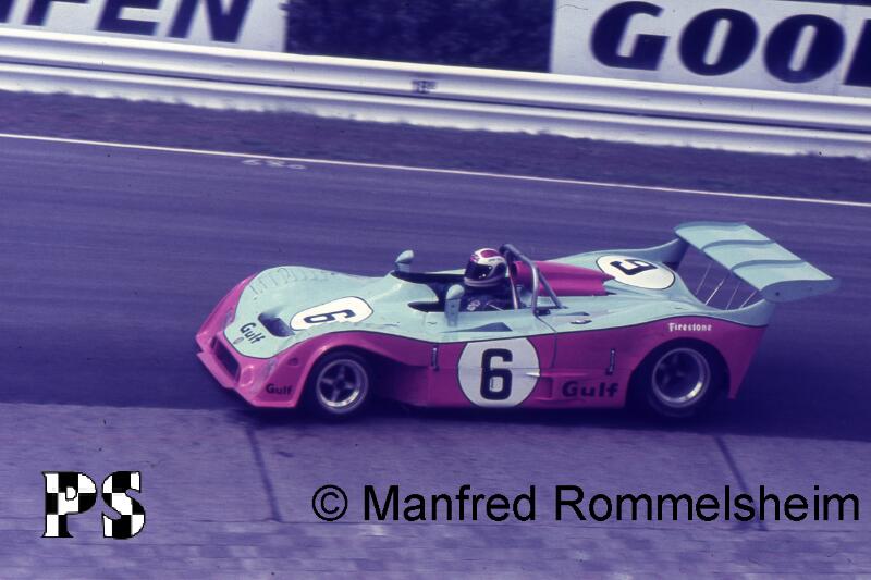 Derek Bell und Mike Hailwood (Gulf GR 7) schieden in der 13. Runde durch Unfall aus.