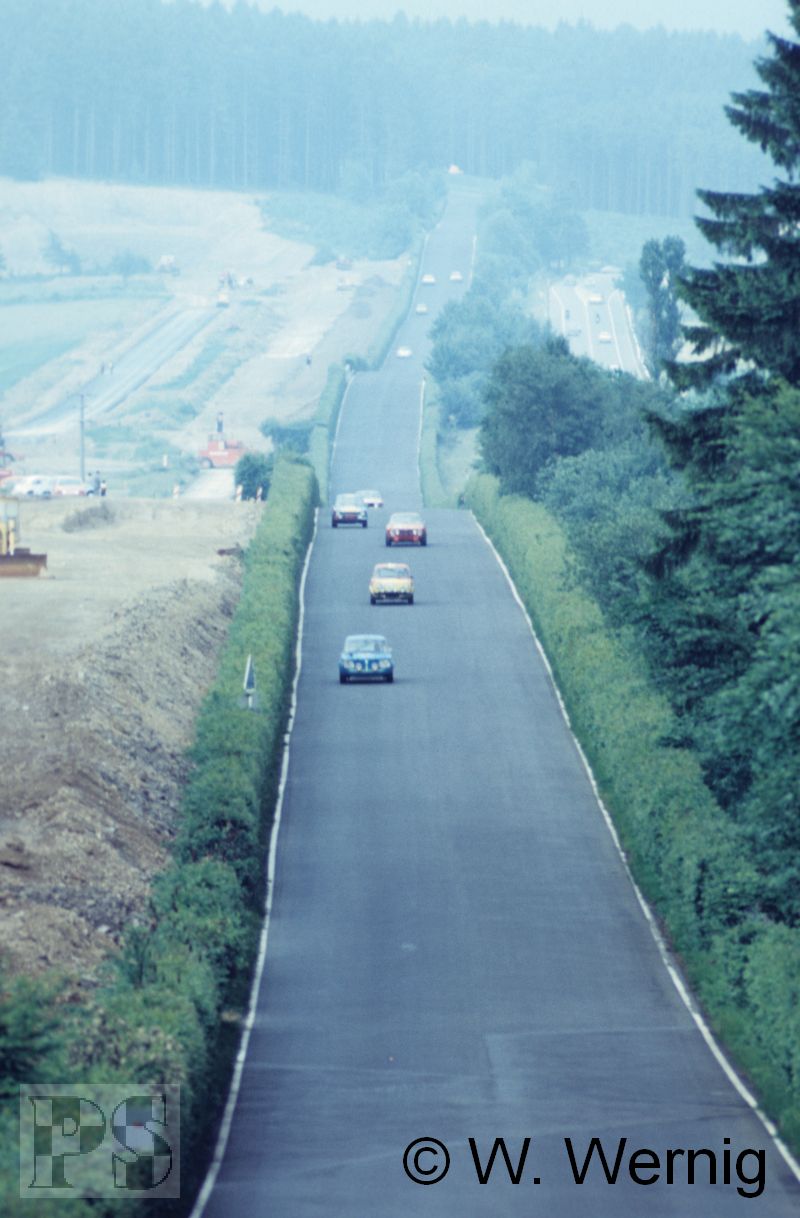 langsamerer Wagen drehte sich vor ihm im Streckenabschnitt Metzgesfeld und Hans