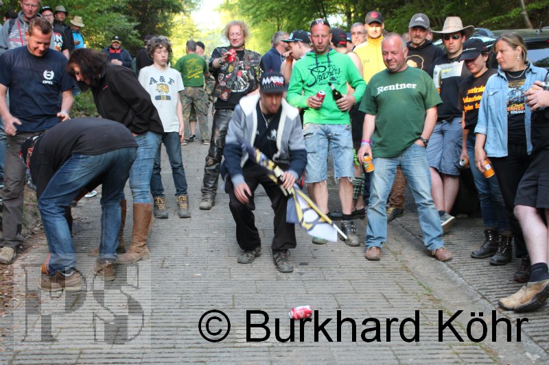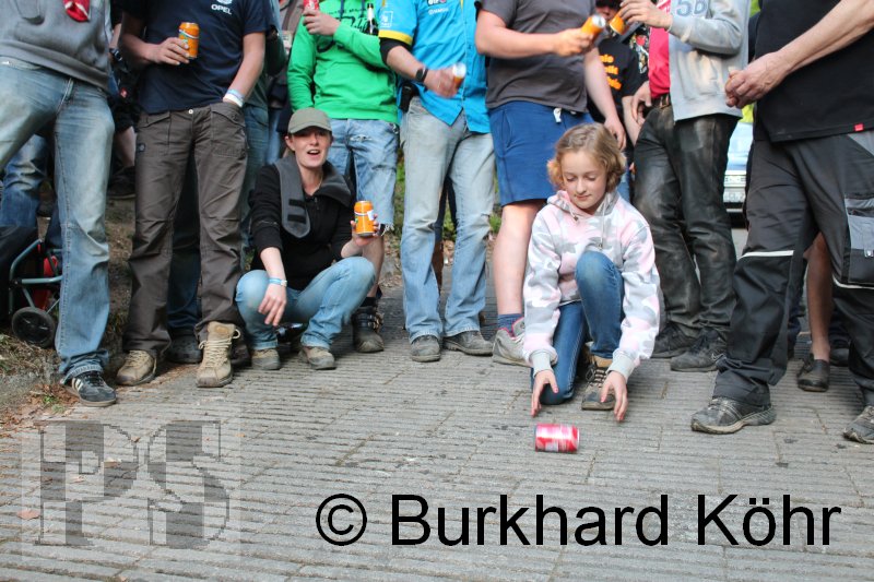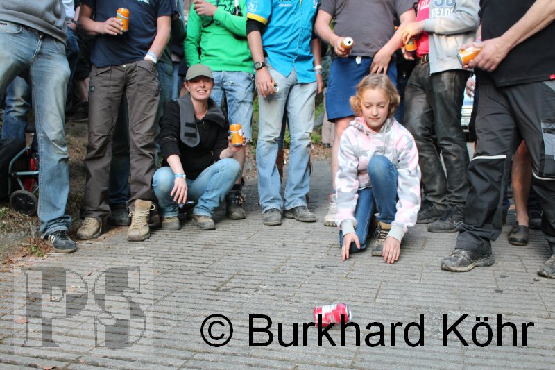 den Titel auf der Steilstrecke erringen. Keine Dose rollte weiter! Wegen der Hektik bei der Ausgabe der Bierdosen war die Startnummer