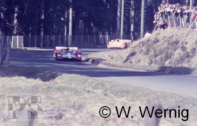 seinen stärksten Konkurrenten ein. Teddy Pilette erlaubte Jürgen Neuhaus, seinen Porsche Spyder unter