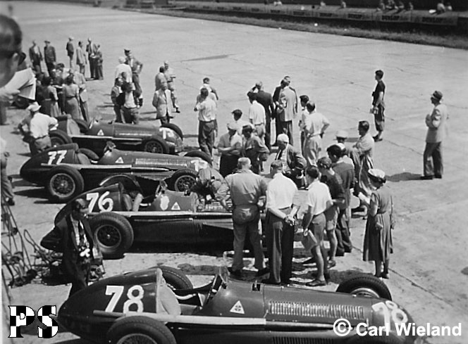 Die Alfa Romeos von Fangio (75), Farina (76), Bonetto (77) und Pietsch (78).