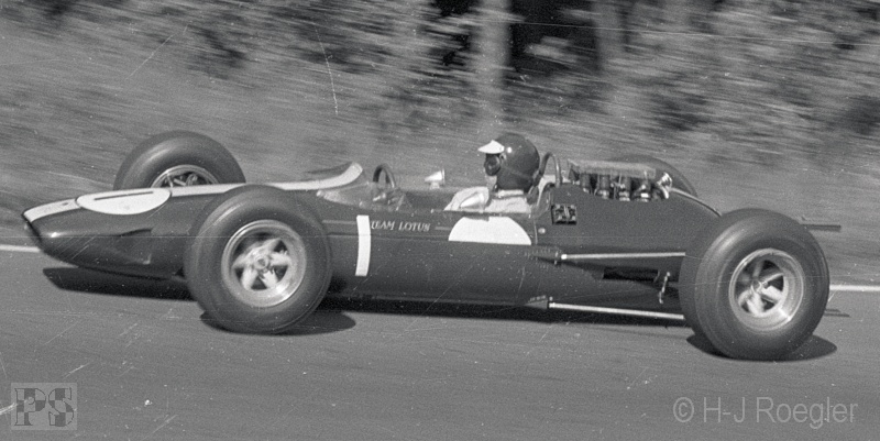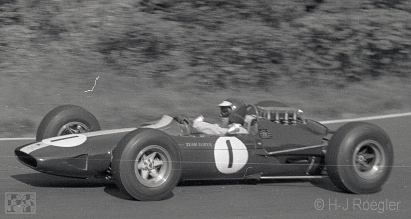Für Mike Hailwood (Lotus 25) war der GP von Deutschland schon in der ersten Runde