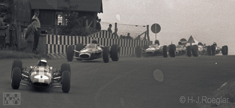 Der Start erfolgte von Rennleiter von Diergardt und Jim Clark übernahm aus der Pole-Position die Führung