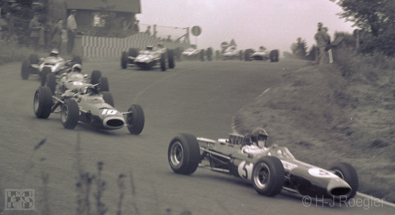 hatte, bog Ben Pon vor Rolf Stommelen in die Südkehre ein. Auf der Gegengerade überholte Rolf Stommelen.