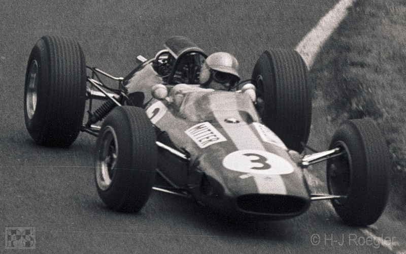 vor Graham Hill und Jacki Stewart. John Surtees hatte mit seinem Ferrari 12 Zylinder Schwierigkeiten und