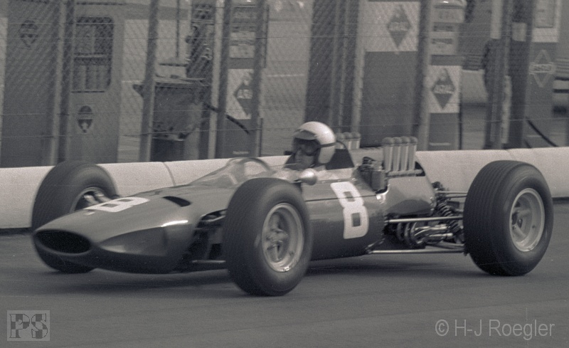 Mike Spence (Lotus 33) schied in der achten Runde mit Defekt aus.