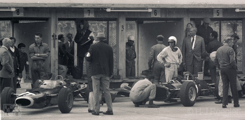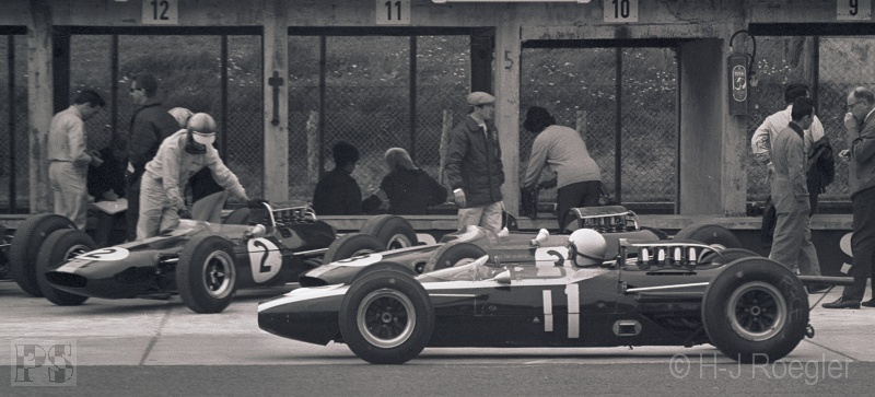musste er seinen BRM an der Box abstellen. Chris Amon (Lotus-BRM) schied mit Motorschaden aus. Er fuhr mit