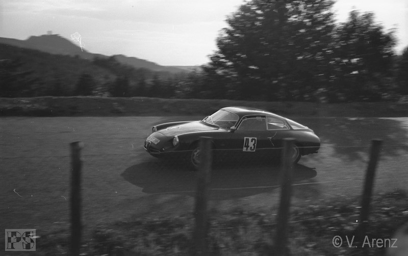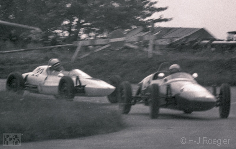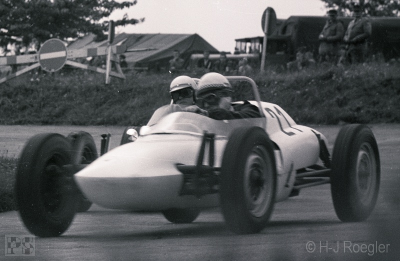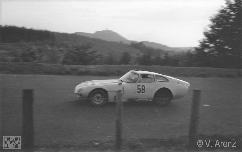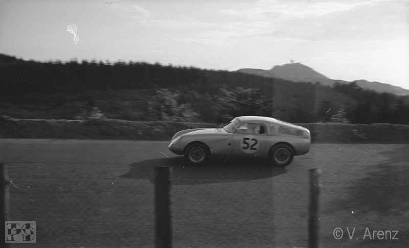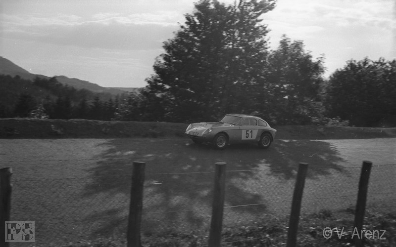 Streckenabschnitt Pflanzgarten einen schweren Unfall mit Peter Taggart (Austin-Healey Sprite). Beide Fahrer