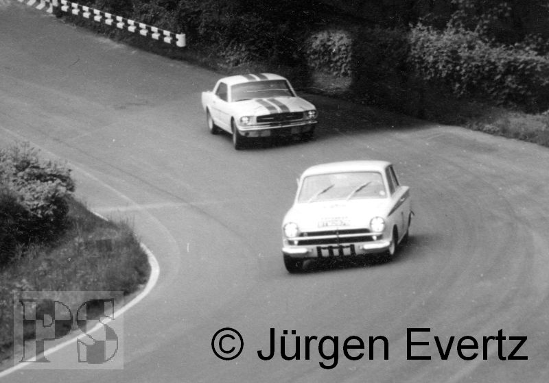 Spannend bis zum Schluss: Sir John Whitmore (Lotus Cortina) vor dem Ford Mustang von