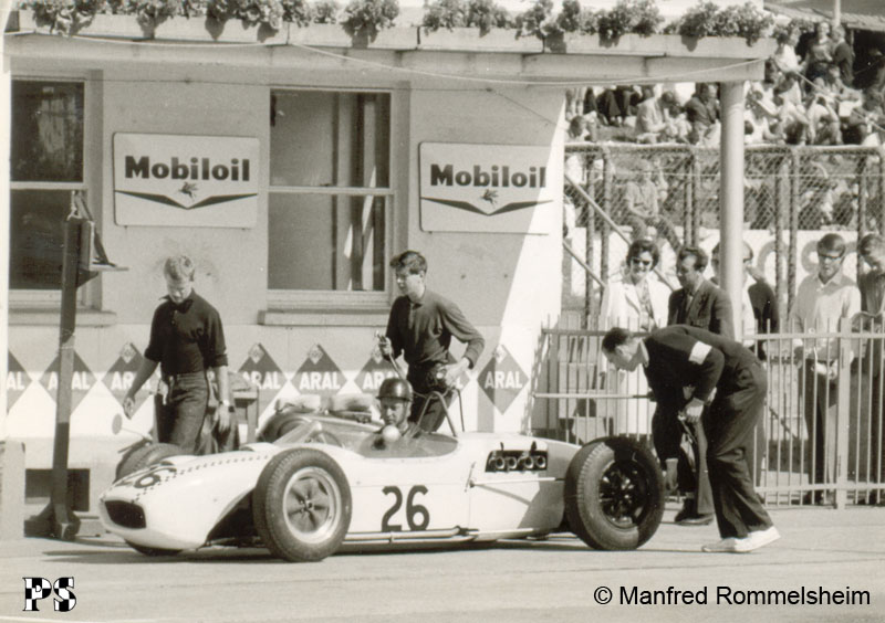 Wolfgang Seidel (Düsseldorf), der seinen defekten Lotus (Lenkungsschaden) im Schneckentempo um den Ring bewegte, nahm Innes Ireland auf seinem Heck stehend mit zu den Boxen, wo dieser seinem Teamchef Colin Chapmann Bericht erstattet. Wolfgang Seidel beendete in der 3. Runde ebenfalls sein Rennen.