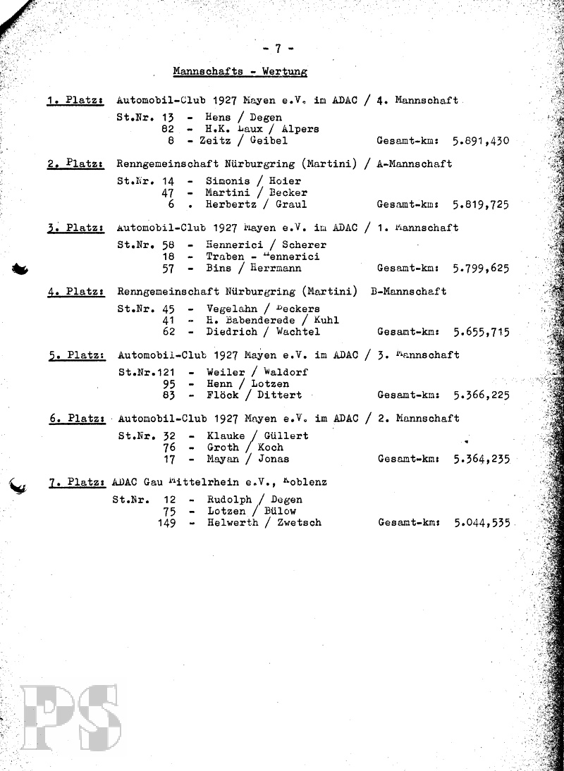 Nordschleife zurück. Die Zweitplatzierten kamen auf 2716,3 Kilometer. Für Horst Hoier und Walter