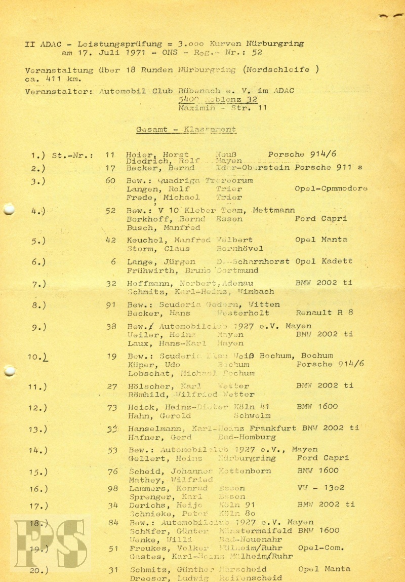 Quellen: Aufzeichnungen Horst Hoier, ONS-Mitteilungen, auto mobil sport