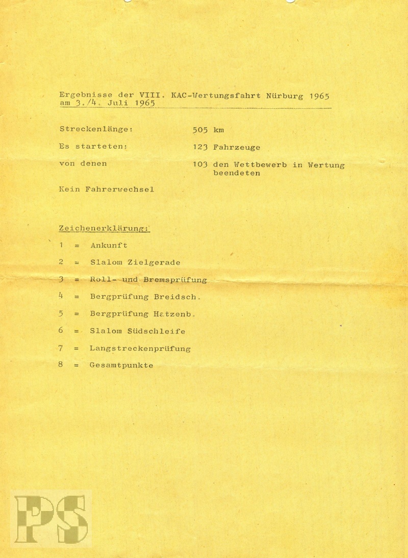 Zuverlässigkeitsfahrt 1965. Mit einem Glas 1204 TS wurde die Gesamtdistanz von 710 Kilometer gemeistert.