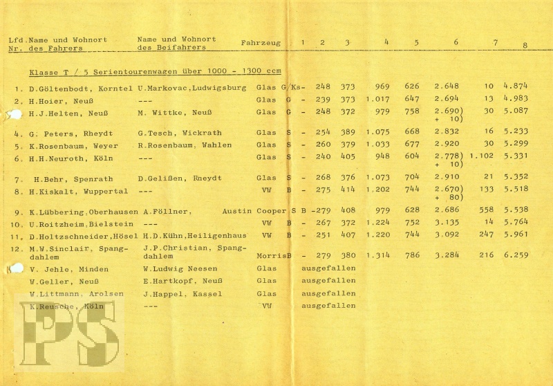 Ergebnisse Klasse T / 5 - Serientourenwagen bis 1300 ccm Hubraum