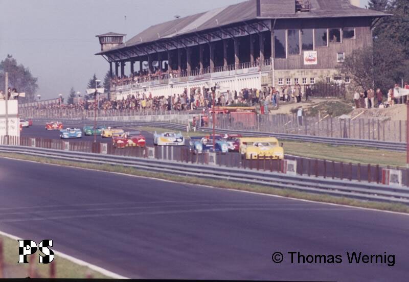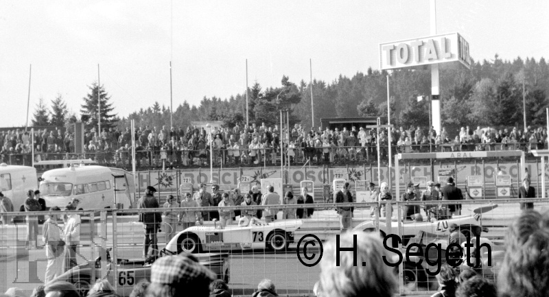 Von diesen haarsträubenden Ereignissen ungerührt führte vom Start weg Willi Kauhsen (Porsche 917/10) das Rennen an. In der dritten Runde platzte an seinem Porsche im Streckenabschnitt zwischen Schwedenkreuz und Aremberg bei über 250 km/h der rechte hintere Reifen. Über mehrere 100 m versuchte Willi Kauhsen den wild schlingernden Porsche unter Kontrolle zu bekommen. Die losgerissenen Protektoren des Reifens schlugen den Tank leck und zerfetzen das Heck der Porsche. Willi Kauhsen lenkte den brennenden Wagen an die Leitplanken und konnte sich in letzter Sekunde aus dem Wrack retten. So kam er mit Brandverletzungen an den Händen und einem Schock noch verhältnismäßig glimpflich davon.