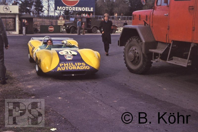 Danach jagte Egmont Dursch im Training der CanAM-Rennwagen seinen Lola T 70 in die Eifelbüsche.