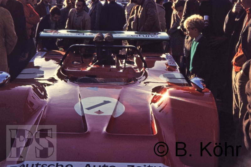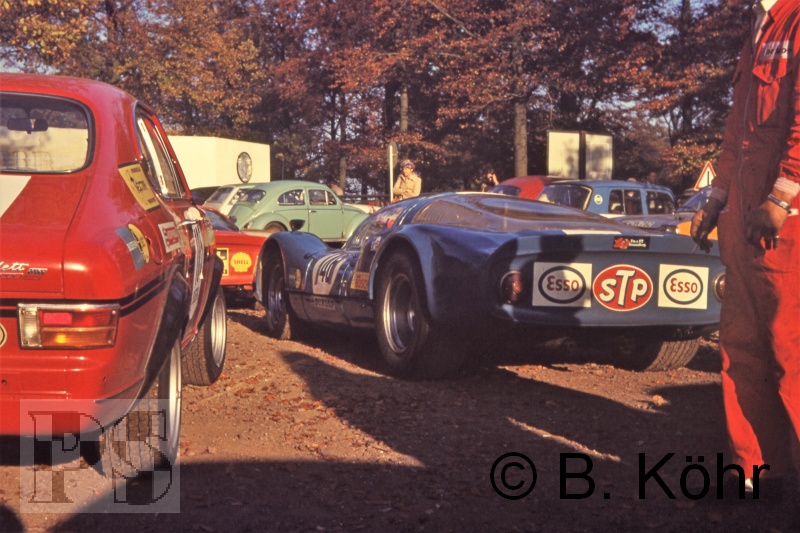 um die Wagen zu bergen. Der Star unter den Rennwagen war der rote March 707 von Helmut Kelleners.