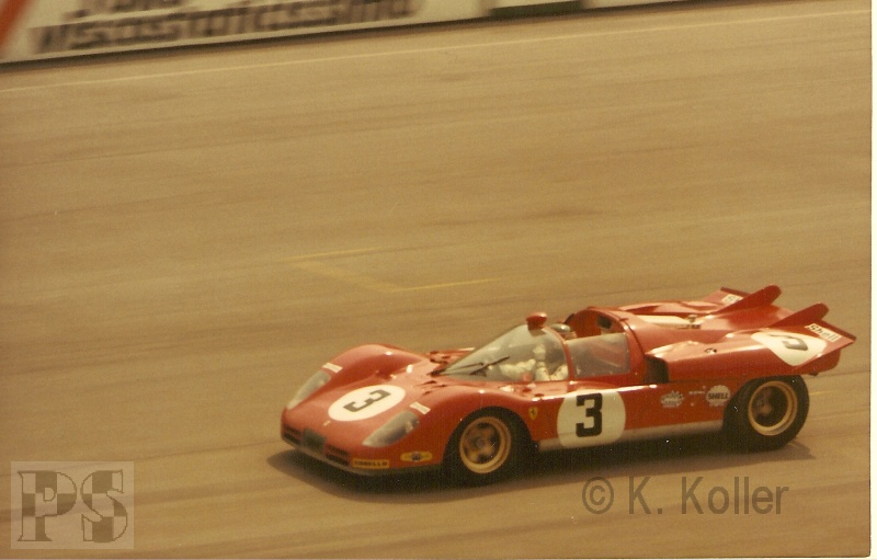 Arturo Merzario im Ferrari 512S. Nach einem Reifenschaden musste Kurt Ahrens den Wagen abstellen.