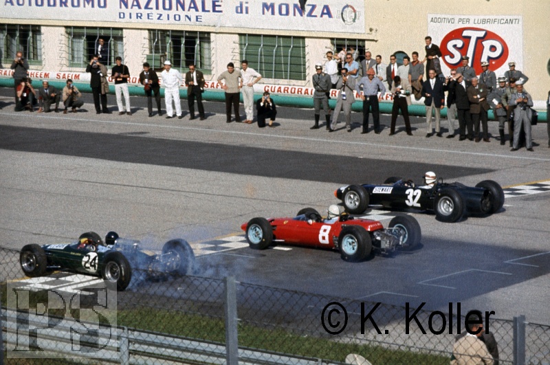Der Große Preis von Italien war von vielen Führungswechseln geprägt. Das Startduell gewann Jim Clark