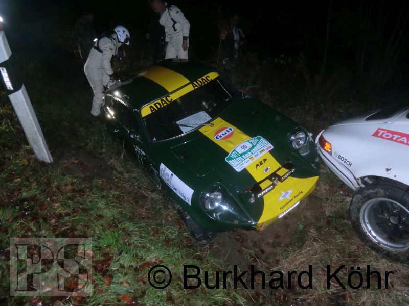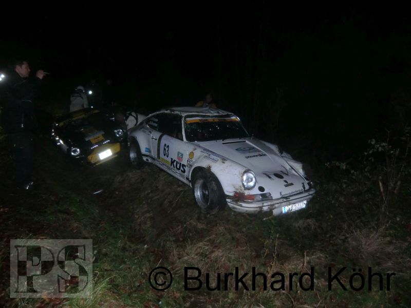 mit dem Porsche 911 RS. An der selben Stelle schied auch der Marcos Mini von Peter Hinz und Martin Fischer aus. Nach nur