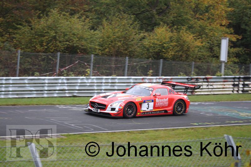 Sieger beim 9. VLN-Lauf wurde Rowe-Racing mit Christian Hohenadel und Maro Engel (Mercedes-Benz SLS AMG GT3) vor Marco Werner /