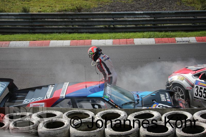 mit Dominik Thiemann / Torsten Kratz / Hajo-Franz Müller (BMW Z4) im Streckenabschnitt Schwedenkreuz. Beide Wagen erlitten