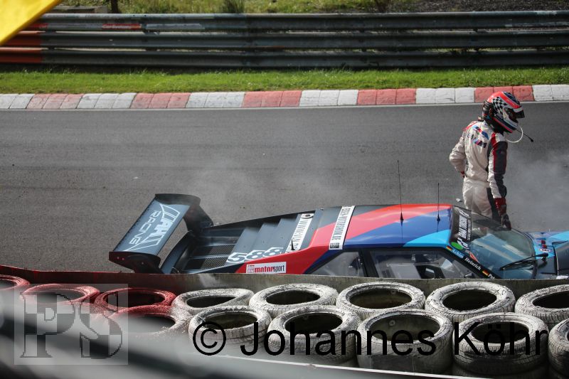 weiteren heftigen Abflug mit Totalschaden für den beliebten BMW M1 mit der Startnummer 588 von Achim und Peter Heinrich.