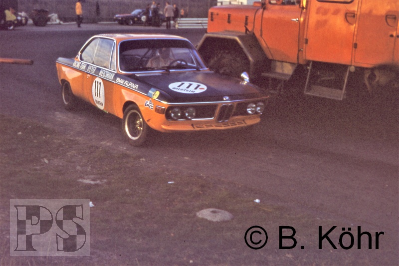 Die Tourenwagen über 2000 ccm Hubraum und alle GT-Klassen trainierten Die Reihenfolge lautete: Ernst Furtmayr (Schnitzer BMW 2800 GS)