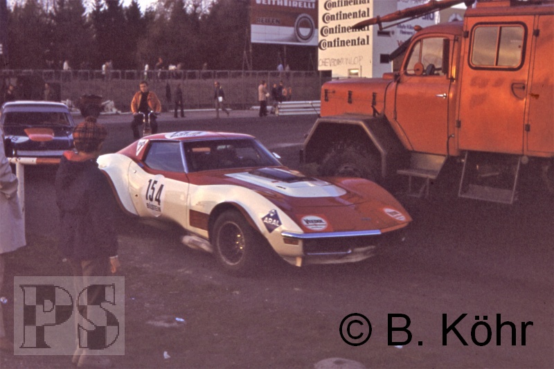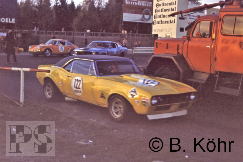 vor der einzigen Frau im Starterfeld Gisela Haman-Bauwens (Porsche 911 T). Auf einem Chevrolet