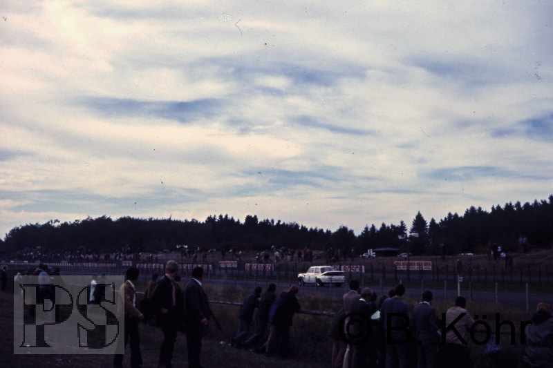 Nun hatte Peter Ernst (Abarth 1000 TCR) keinen Gegner mehr, gewann unangefochten dieses Rennen vor Willi Wisskirchen (NSU).