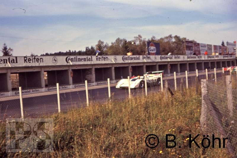 Danach jagte Egmont Dursch im Training der CanAM-Rennwagen seinen Lola T 70 in die Eifelbüsche.