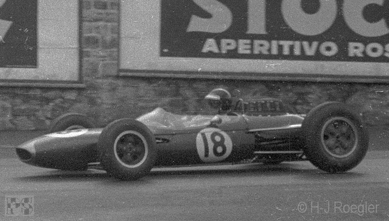 Der Lola von Chris Amon wird im Training von einem Mechaniker gefahren.