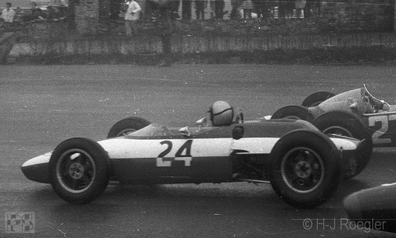 Jim Clark hatte den besten Start. Teamkollege Trevor Taylor musste aufgrund seiner Verletzung aus dem